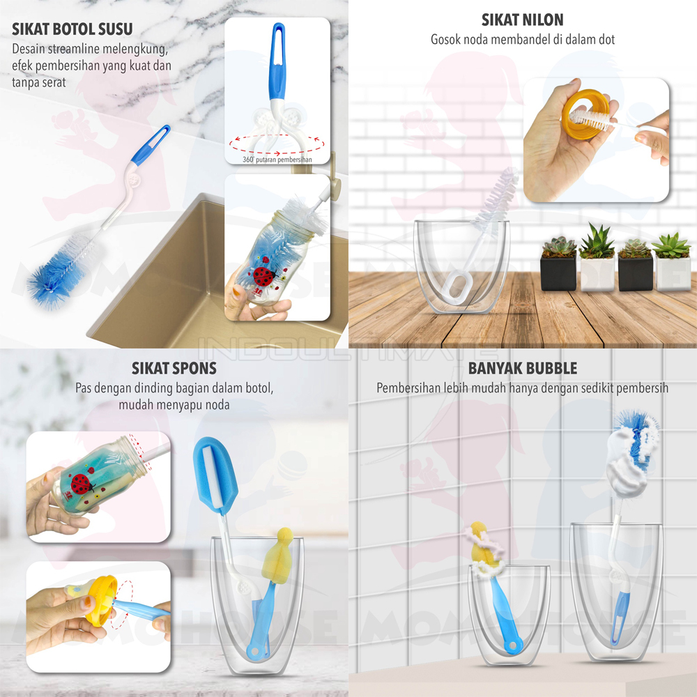 Sikat Botol susu Bayi 2in1, 4in1, 7in1 Sikat Spon Pembersih Botol Susu Bayi Random Colour BR-05 Pembersih Dot Alat Cuci