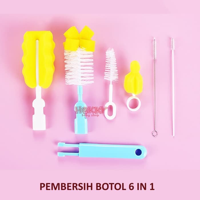 HK Sikat Sponge Pembersih Dot Botol Susu Bayi dan Gelas 6 in 1 | sikat sponge 2 in 1
