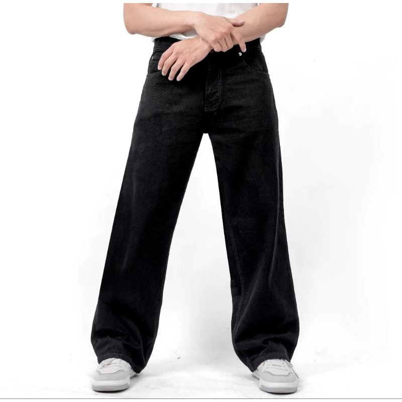 Celana Jeans Pria Baggy Pants Korean Style Oversize Straight Loose Blue Reguler Fit Wide Leg