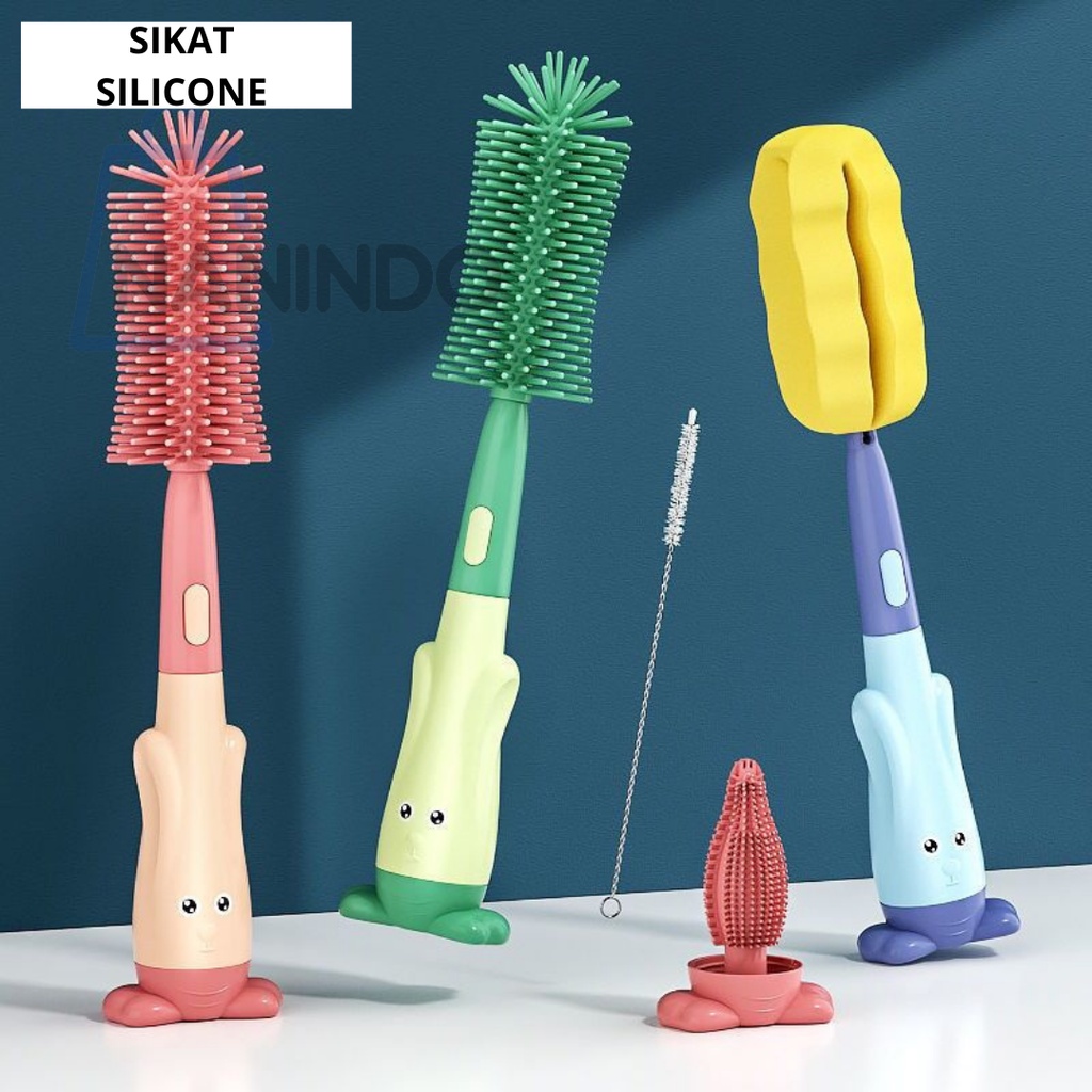Sikat Pembersih Botol Susu Bayi 4 in 1 Multifungsi Bahan Silikon BPA FREE Dapat Berputar 360 Derajat