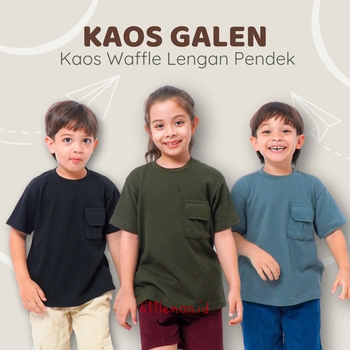Kaos Waffle Anak Galen Series 1-12 Tahun Lengan Baju Pendek Cewek Cowok Littleman.id - Jet Black S (2-3 thn)