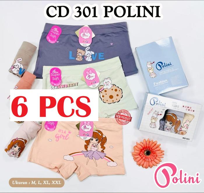6pcs Celana Dalam Boxer Anak Perempuan POLINI Art 301 Dalaman Lembut Ukuran M-L-XL-XXL - M