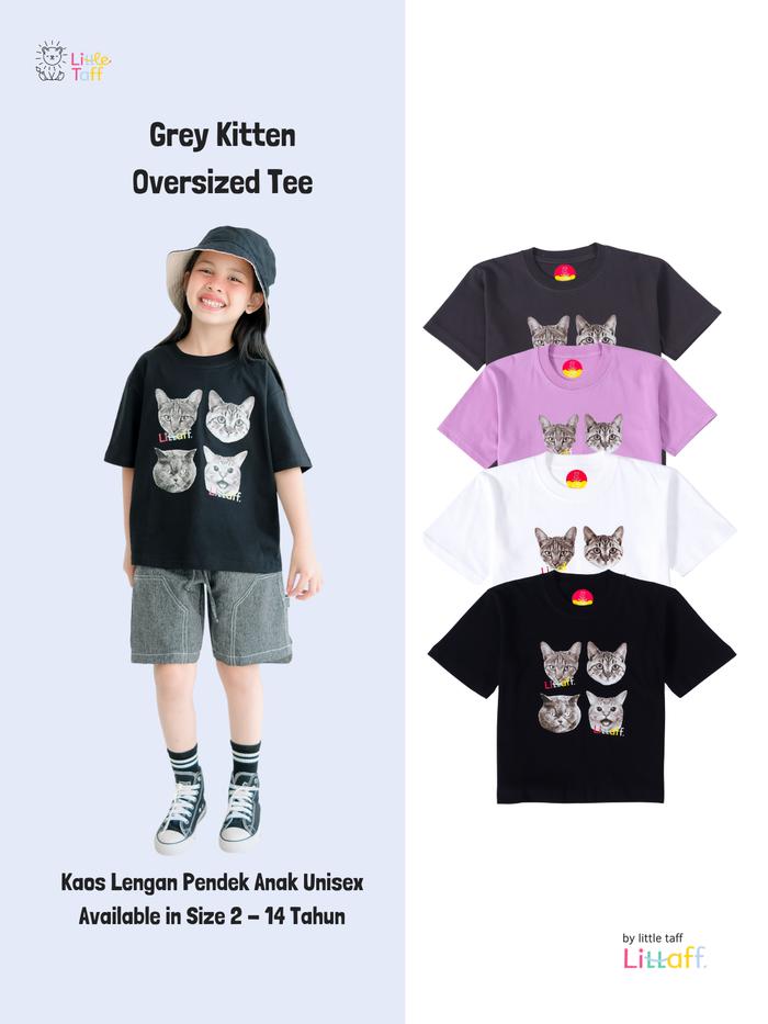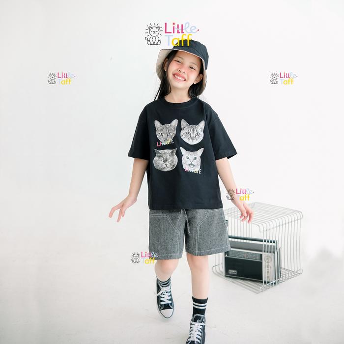 LITTLE TAFF - Atasan Kaos Oversize Anak Laki-Laki Perempuan usia 3-14 Tahun - Hitam S
