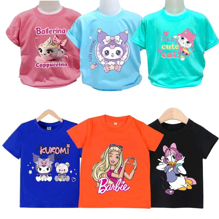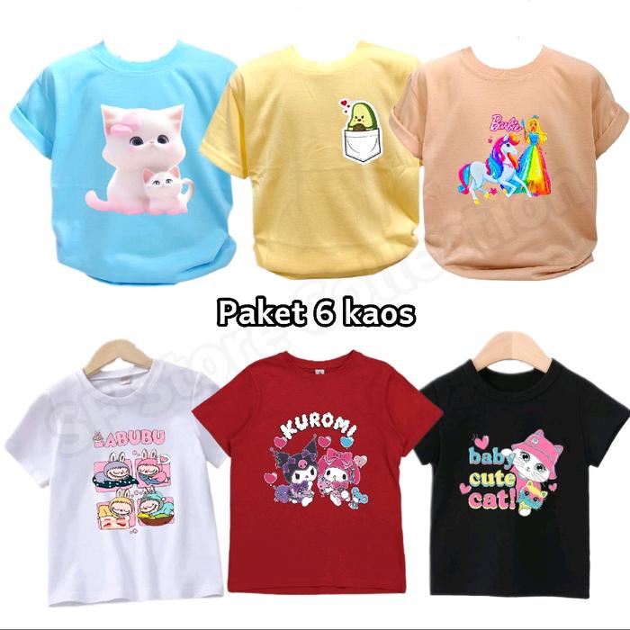 Paket 6 Pcs Kaos Anak Perempuan Gambar Campur Lucu Katun Baju Fashion - 6pcs campur S
