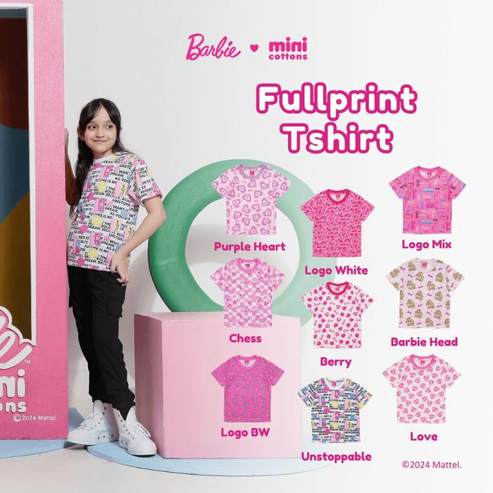 Barbie x Minicottons Fullprint Tshirt Kaos Anak Perempuan 2-12 Tahun - Berry 11-12 Years