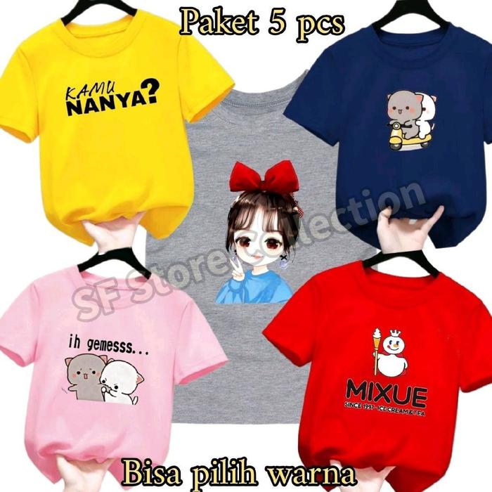 Paket 5 Pcs Kaos Cantik Distro Pakaian anak Perempuan Bahan Katun Lembut - 5pcs sesuai foto profil S