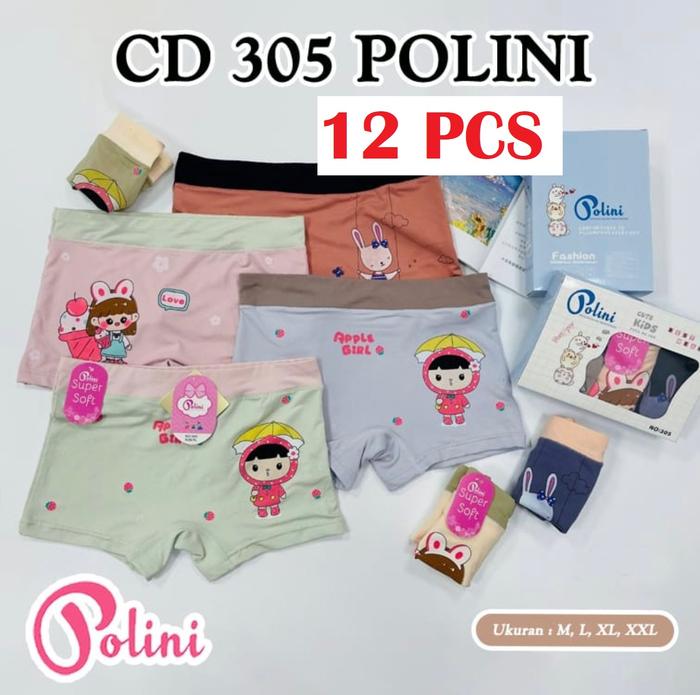 12pcs Celana Dalam Anak Perempuan POLINI Art 305 - Dalaman Short Pants Ukuran M-L-XL-XXL - M
