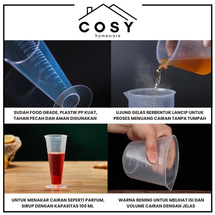 COSY Plastik Gelas Cup Ukur Takar 100 ml Jenis V / Takaran Bibit Parfum Ukuran 100ml Serbaguna Alat - Tinggi 100ml