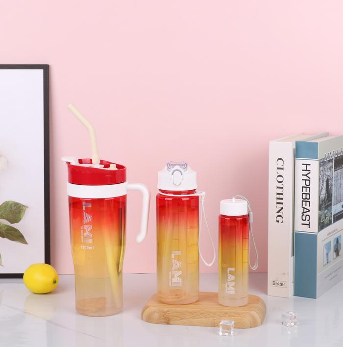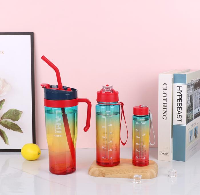 Botol Car Cup 1.2 Liter + 700ml + 260ml Botol Minum Viral 1 set Plastik Putih Sedotan Bottles Kitchenware Water - WHITE