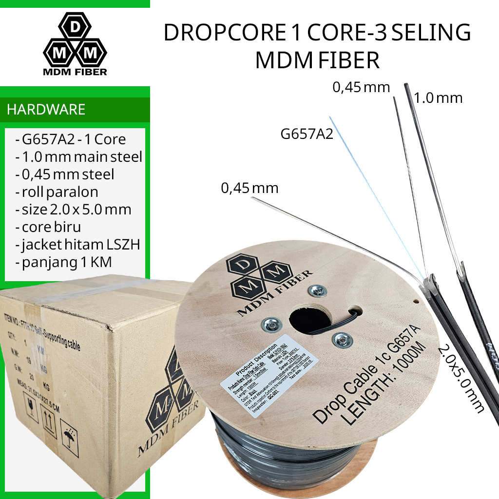 Dropcore 1 Core 3 Seling 1000 Meter G657A1 kabel fiber optik Global Netcable Mimacro MDM Fiber