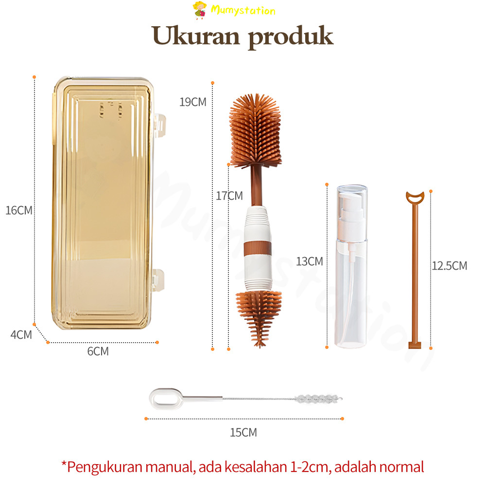 Mumystation 4in1 Sikat Pembersih Botol Susu Bayi Silikon Dot Sedotan Sikat Baby Botol Susu Free Box