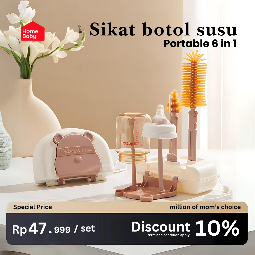 Homebaby Set 6 IN 1 Sikat Botol Susu Bayi Sikat Botol Bayi Travelling Multifungsi Silikon PP