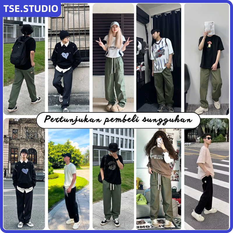 Celana Cargo Panjang Pria Oversize Casual Baggy Straights Korean Style Fashion Wide Leg Cargo Pants