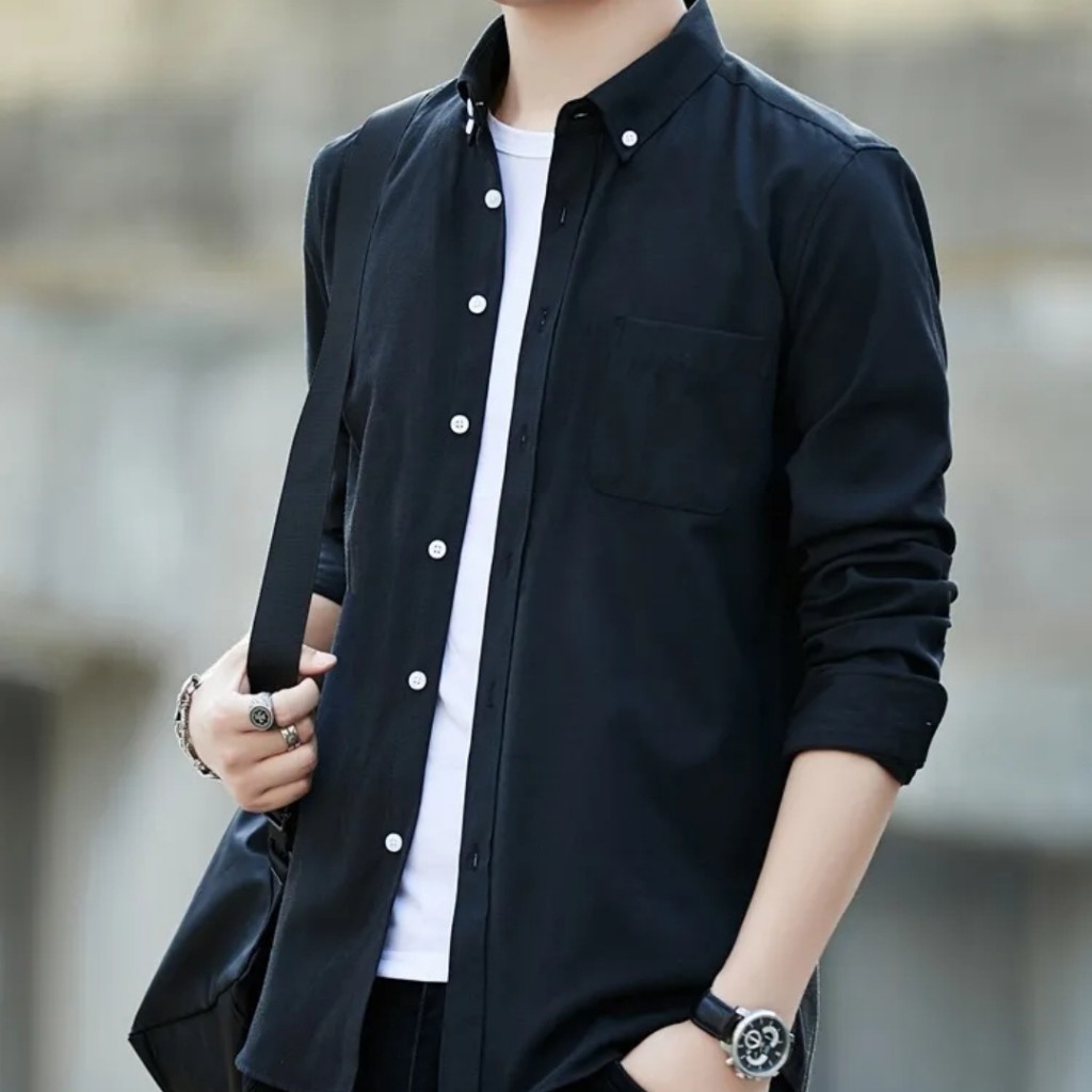 Kemeja Pria Lengan Panjang Polos Abu-Abu Navy Hitam Maroon Putih Hem Cowok Keren Kantor Kekinian Berkualitas dan Kasual Bahan Katun Premium Ready banyak