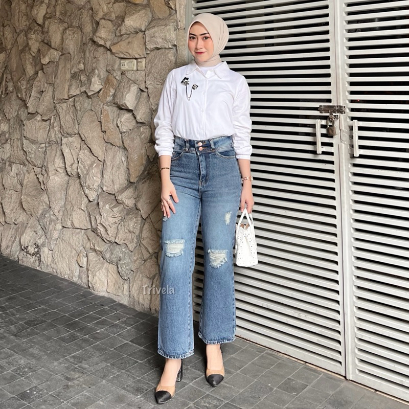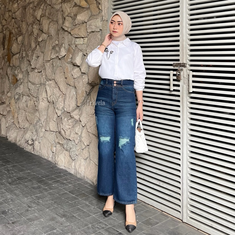 CELANA JEANS WANITA TRIVELA - ERICA CULLOTES JEANS 27-38 - CELANA JEANS SPRAY RIPPED SOBEK LAPIS JUMBO - PLAINBF