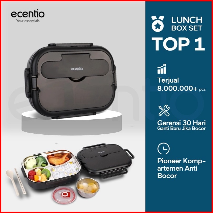 Special Jessica Efendy Ecentio Kotak Bekal Stainless Steel 1000ml Lunch Box Tahan Bocor Anti Campur Rasa Wadah Makan Ben