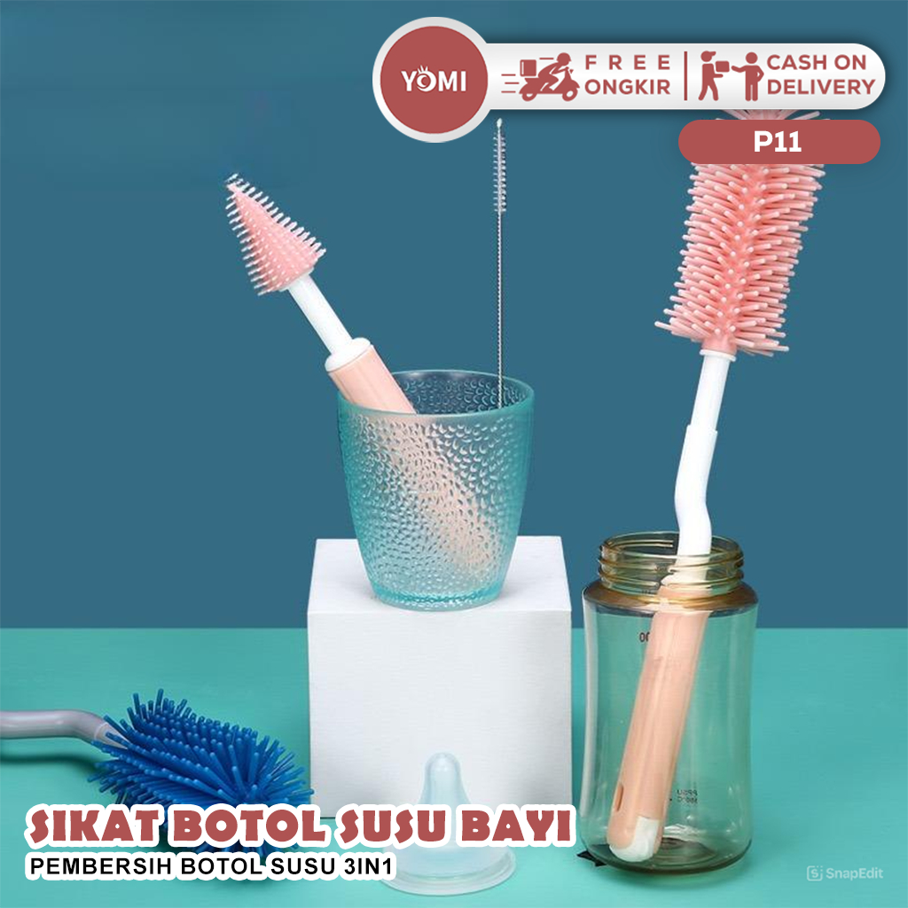 YOMI - Sikat Botol Susu Bayi P11 / Pembersih Botol Susu 3in1
