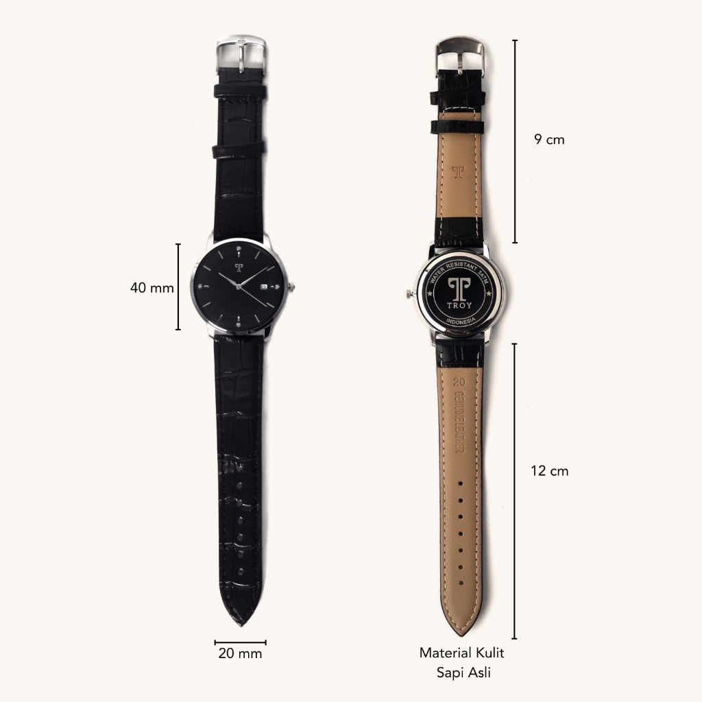 Troy Jam Tangan Pria Model Classic Strap Kulit Asli Analog Glass Modern Simple Mewah Remington