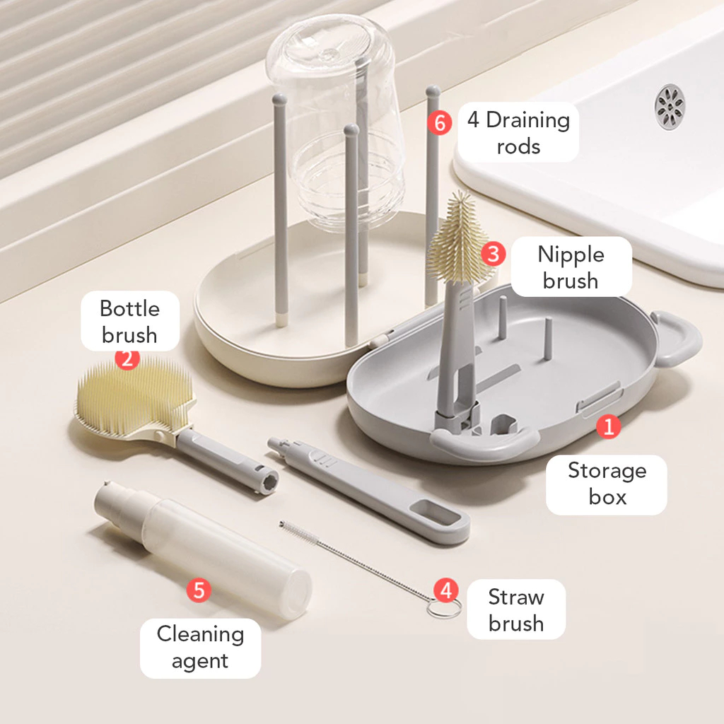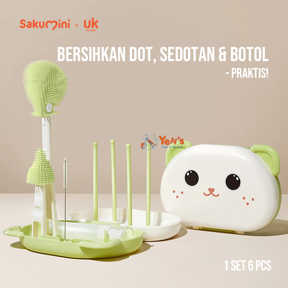 Sakumini 6in1 Travelling Bottle Brush Kit Sikat Pembersih Botol Dot Sedotan Multifungsi BPA FREE