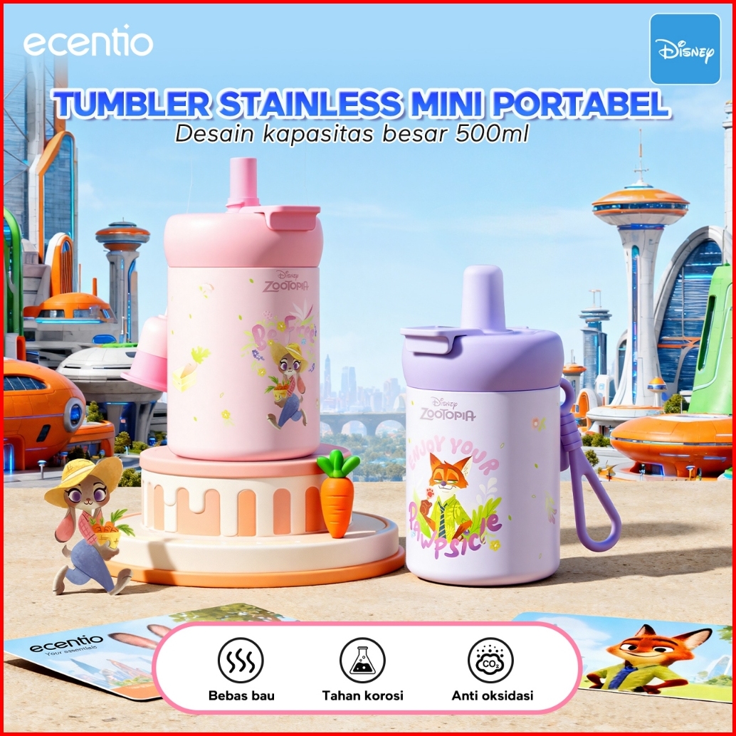 Special Rrq Ecentio Tumbler Stainless 316 Disney Zootopia Co-brand 750ml 500ml Tahan Panas Dingin 24 Jam Botol Minum Luc