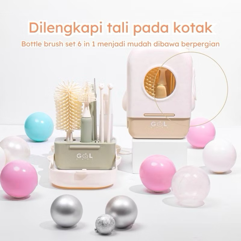 GOL Baby 6 in 1 Sikat Cuci Botol Susu Bayi Portable Travelling Bottle Brush Kit Set Sikat Pembersih Cuci Dot Sedotan Bot