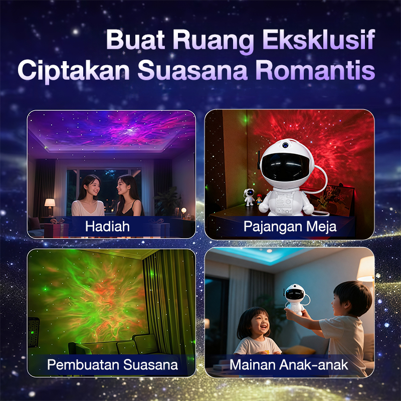 Garansi 10 Tahun Lampu Tidur Aesthetic Lampu Proyektor Hadiah Natal Ulang Tahun Lampu Atmosfer Astronot Proyektor Bintan