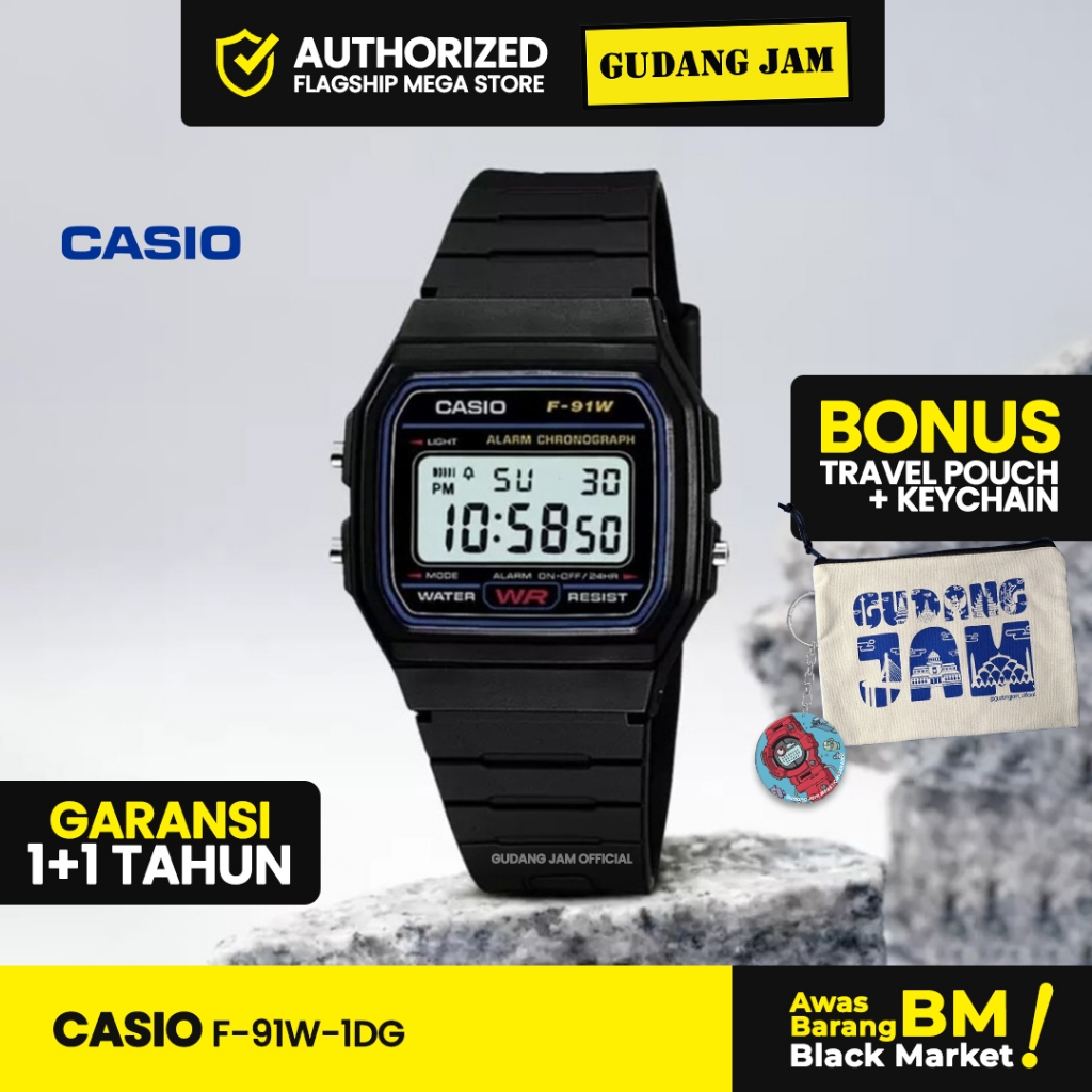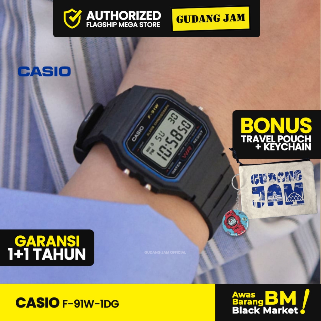 Jam Tangan Pria Casio F-91W-1Dg Anti Air Original Black Resin