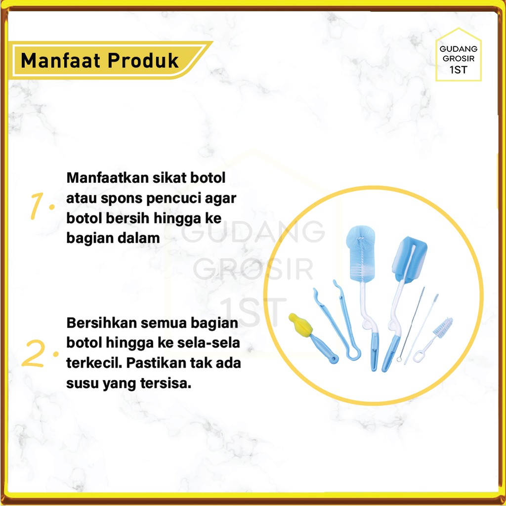 Sikat Botol Susu Bayi 7 in 1 | Spons Pembersih Botol | Pembersih Botol | 7 in 1 Bottle Brush Set