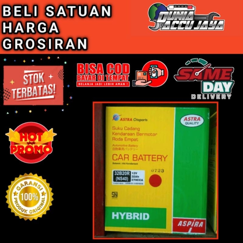 aki mobil ns40 32B20R 32ah ASPIRA ASTRA HYBRID Avanza rush veloz xenia terios Espass Feroza grandmax Luxio zebra taruna apv carry Escudo esteem Sidekick Vitara spark Atos Mazda mr-90 tavera maven