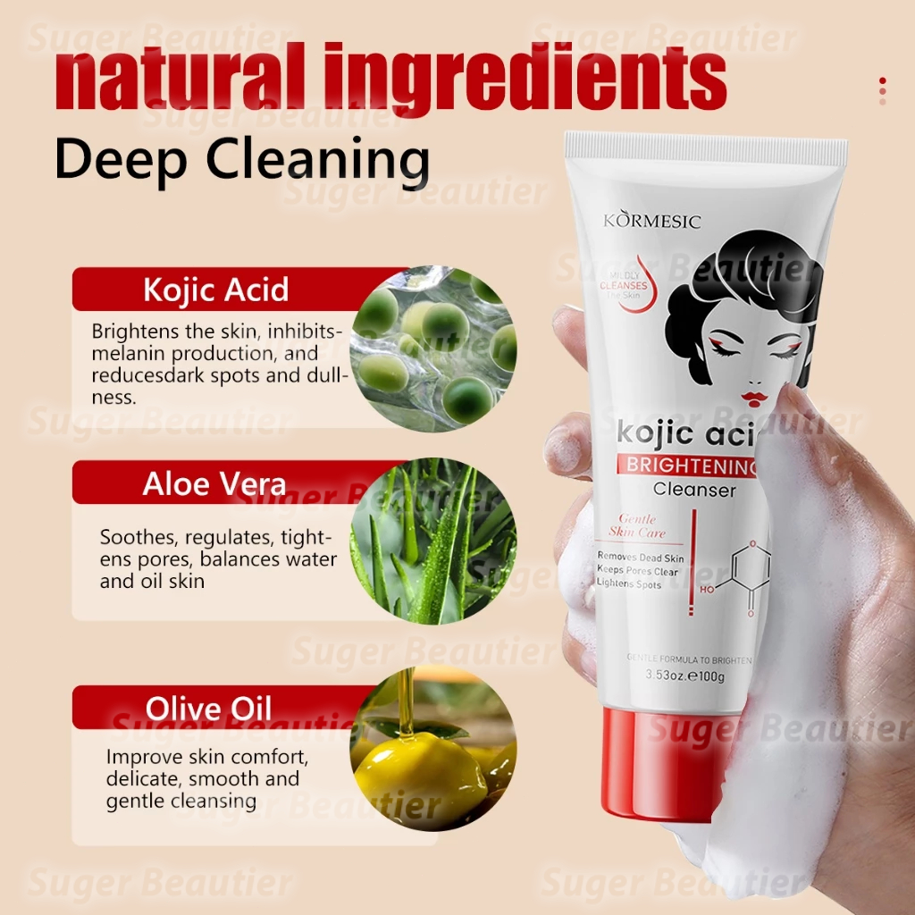 100g Kojic Acid facial wash Pemutih Penghilang Flek Hitam Pembersih Wajah Pemutih Wajah Jerawat Tungau Pembersih Dan Kom