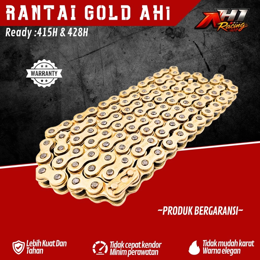 Rantai 90ld Rantai kuning mengkilap 415 428 106 110 112 120 130 140 L Merk AH1 RACING THAILAND