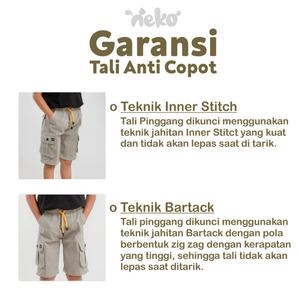 Celana Pendek Anak Laki Laki NEKO Celana Pendek Cargo Anak Usia 2-12 Tahun Cotton Twill Stretch Premium