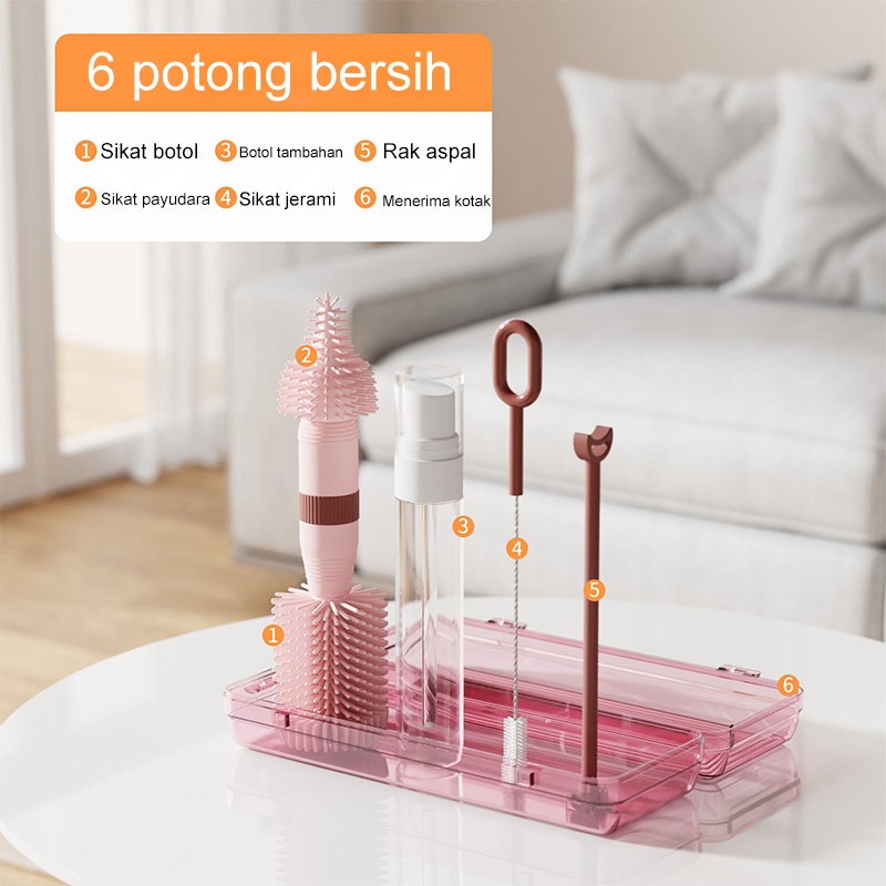 Sikat Botol Bayi 4 in1 Set Sikat Pembersih Botol Susu Bayi Silikon Dot Sedotan BPA Free -Free Box