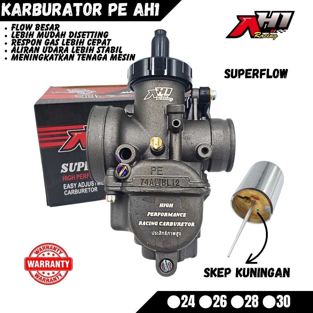 Karburator Karbu PE 24 26 28 30 AH1 Racing Superflow Skep Kuningan - Karbu PE24 PE26 PE28 PE30 Skep Kuningan AH1 Racing