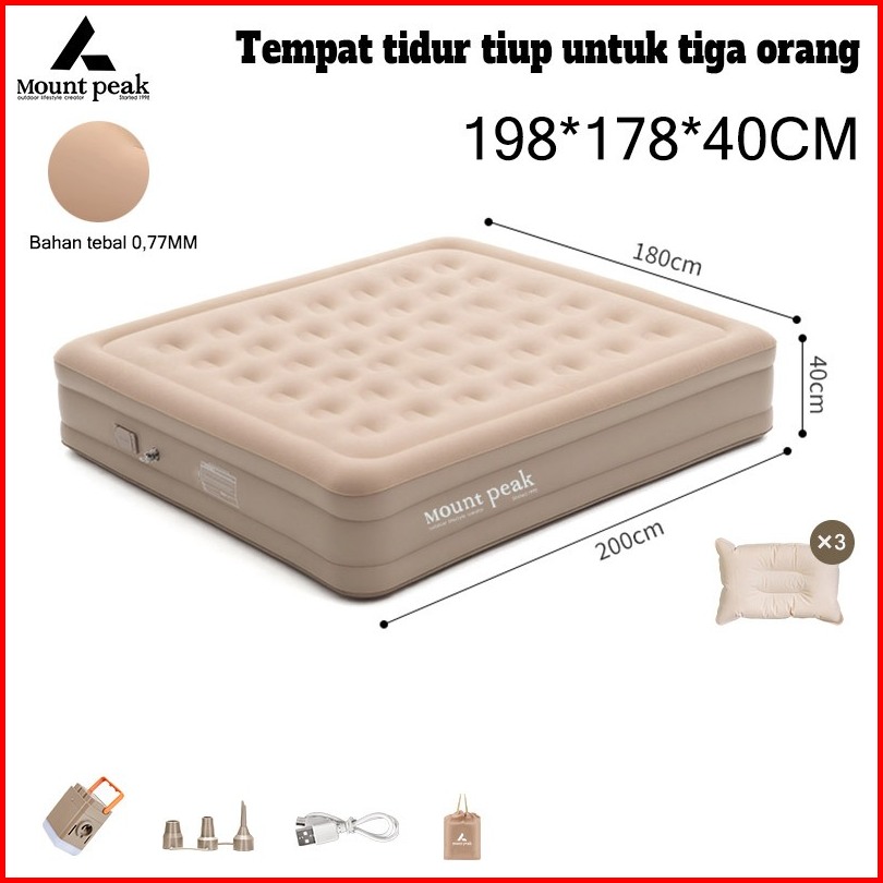 Mountpeak Tiga Orang Kasur Angin Tempat Tidur Tiup Kasur Udara Otomatis Portabel Outdoor Rumah Camping Tamu Darurat Nti