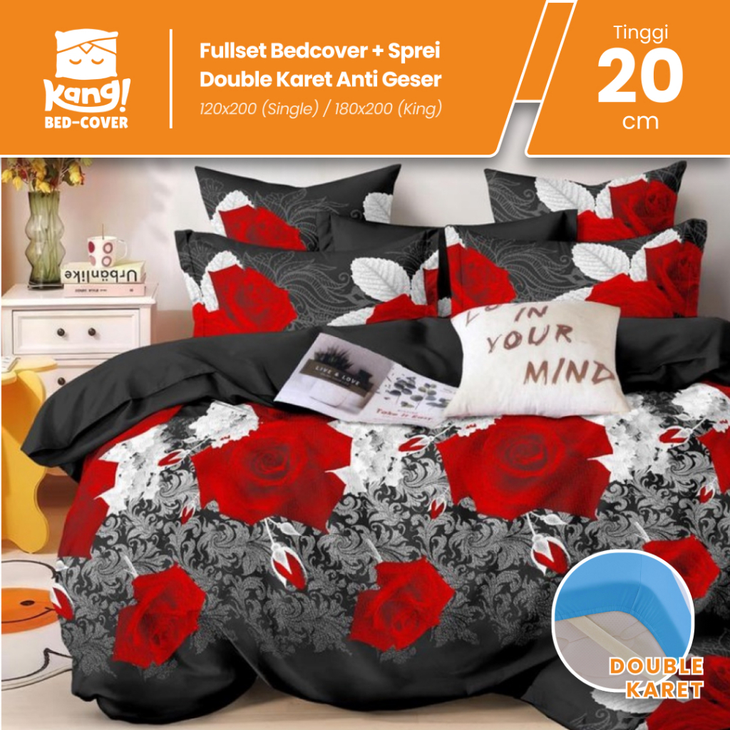 Kang Bedcover - Satu Set Bedcover & Sprei Aesthetic Katun Microtex Disperse Premium - King Size 180X200X20 - Termasuk Sa