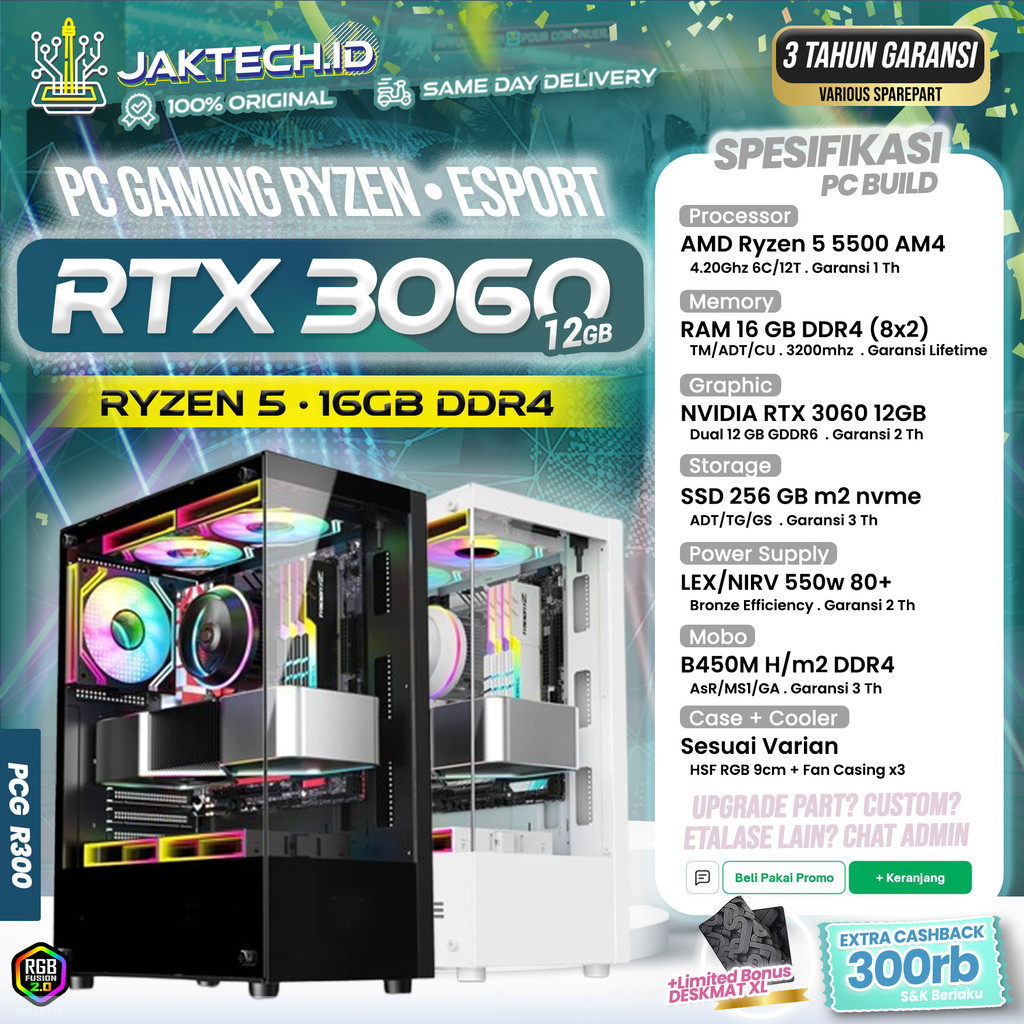 PC Gaming Ryzen 5 RTX 3050 3060 2060 Super RX 580 6500 6600 6GB 8GB 12GB | 16GB SSD Komputer Rakitan