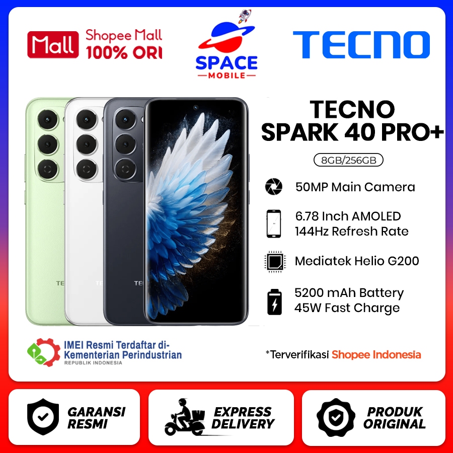 Tecno Spark 40 Pro+ Plus [8GB+256GB] - Garansi Resmi 1 Tahun