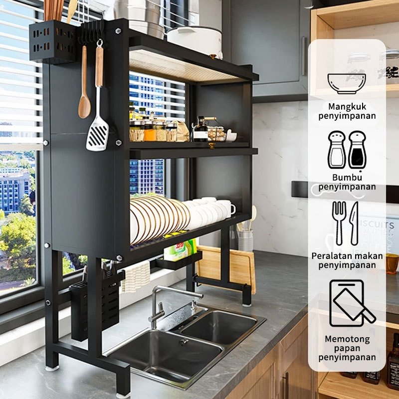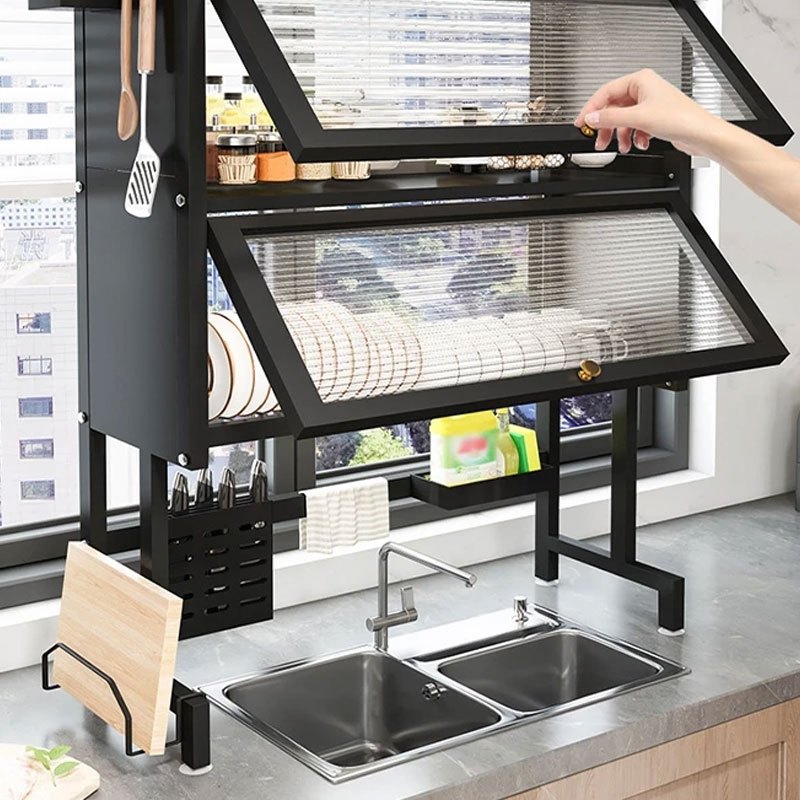 Rak Piring Wastafel Stainless Steel Lemari Rak Piring Tertutup Rak Dapur Multifungsi