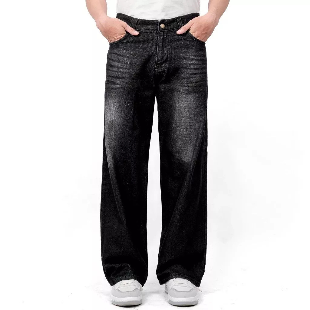 Celana Jeans Panjang Pria Koreanstyle Celana Losefit Wisker Retro/Beggy Jeans Pria Gombrang Skena Wide Leg