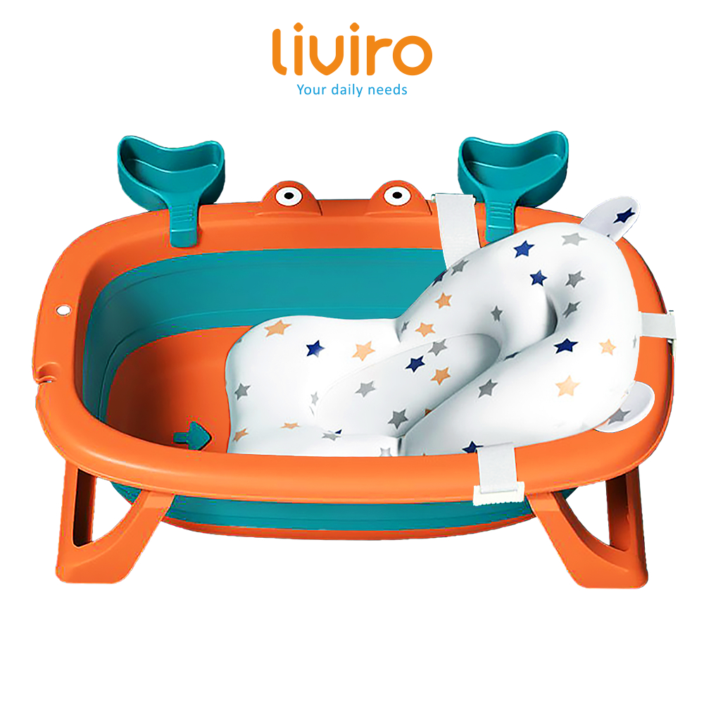 LIVIRO Bak Mandi Bayi Newborn Lipat Baby Bathtub Portable Motif Kepiting Lucu Dengan Bantal Lengkap Berkualitas