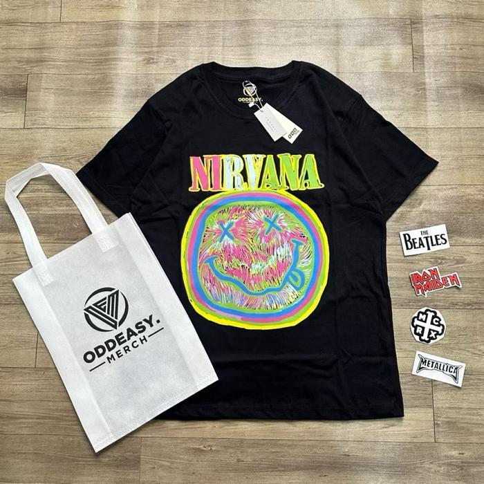 T-SHIRT KAOS NIRVANA GREEN FREE BAG BONUS STICKER HIGH LOGO TEBAL PRIA BAJU DISTRO KATUN WANITA PUTIH HITAM COMBED COWOK TANGAN PENDEK - HITAM, M