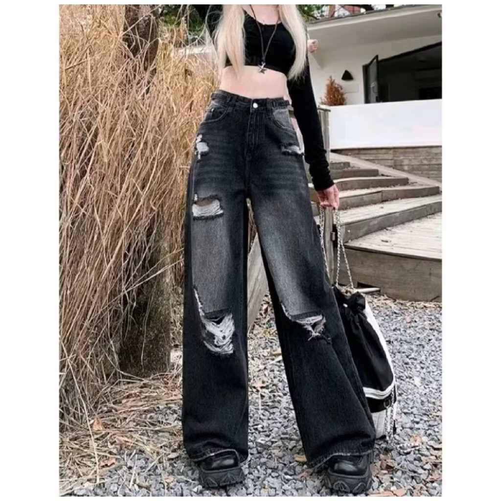 UNISEX HIGHWAIST CELANA JEANS BAGGY LOSSE SOBEK LUTUT