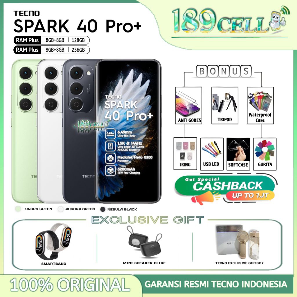 TECNO Spark 40 Pro+ [8/256GB] - 50MP Camera, MediaTek Helio G200 - Spark 40 Pro Plus GARANSI RESMI