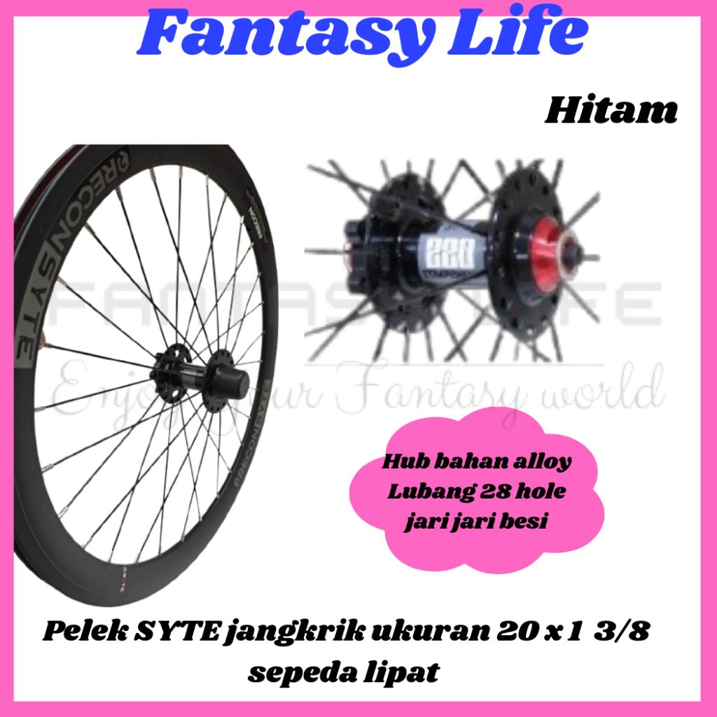 Fantasy Wheelseet Velg 20+ SYTE 28 hole bearing jangkrik discbrake alloy ukuran ban 20 x 1 3/8 sepeda lipat SEPASANG