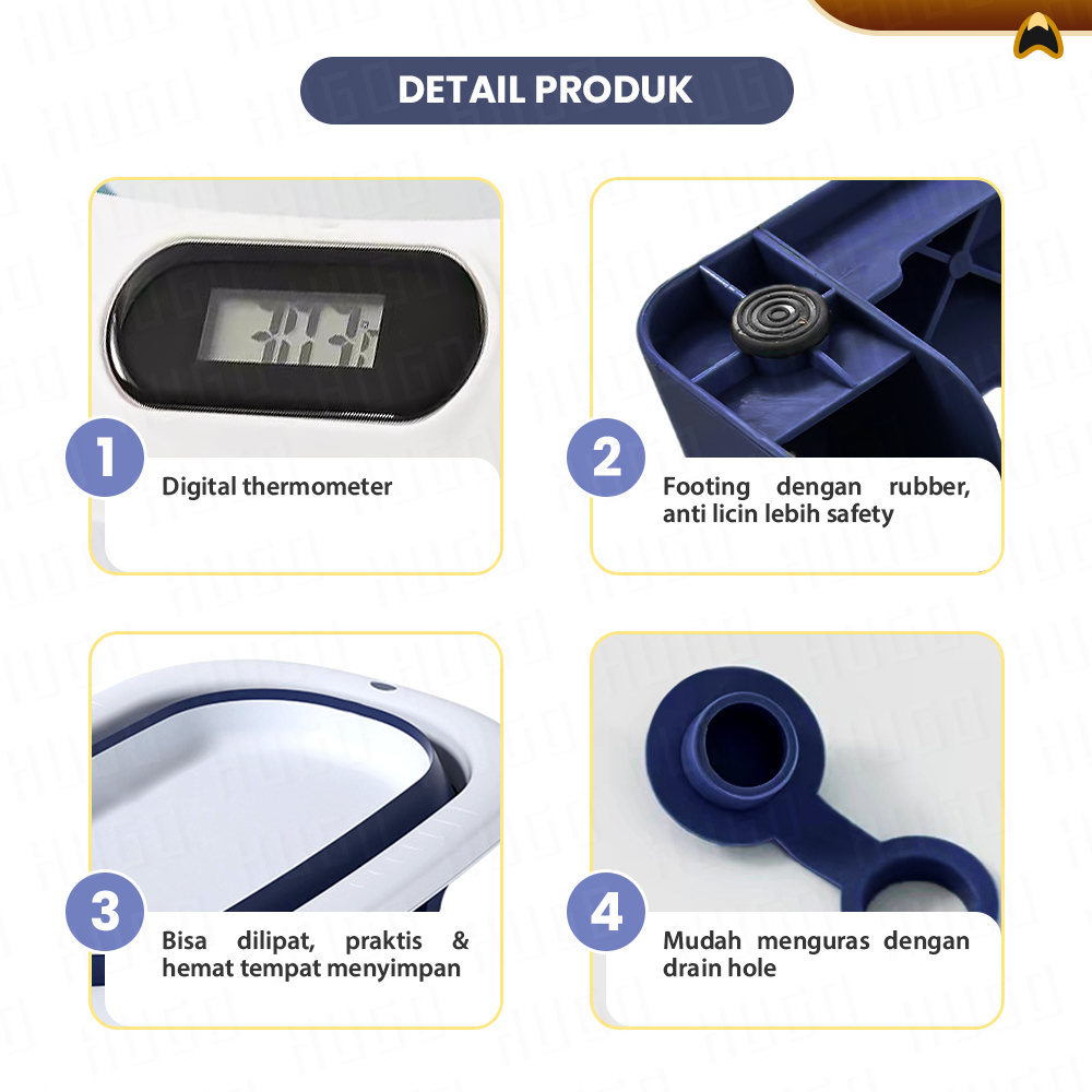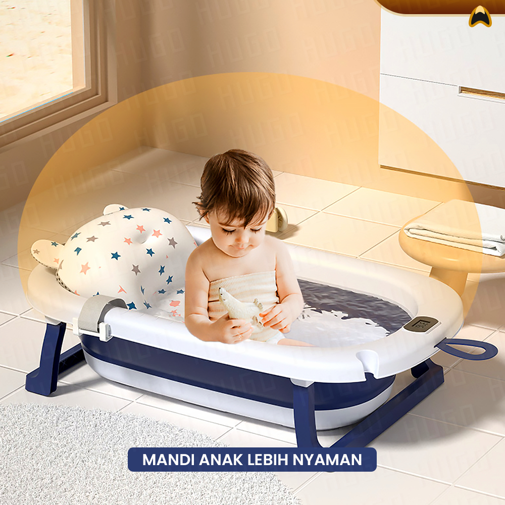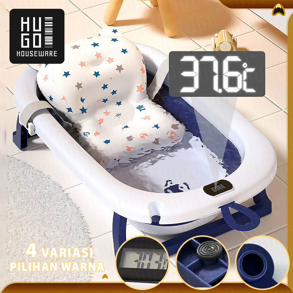 Hugo Houseware Foldable Baby Bath Tub / Bak Mandi Bayi Lipat dengan Pengukur Suhu dan Bantal Mandi Tempat Mandi Bayi Por
