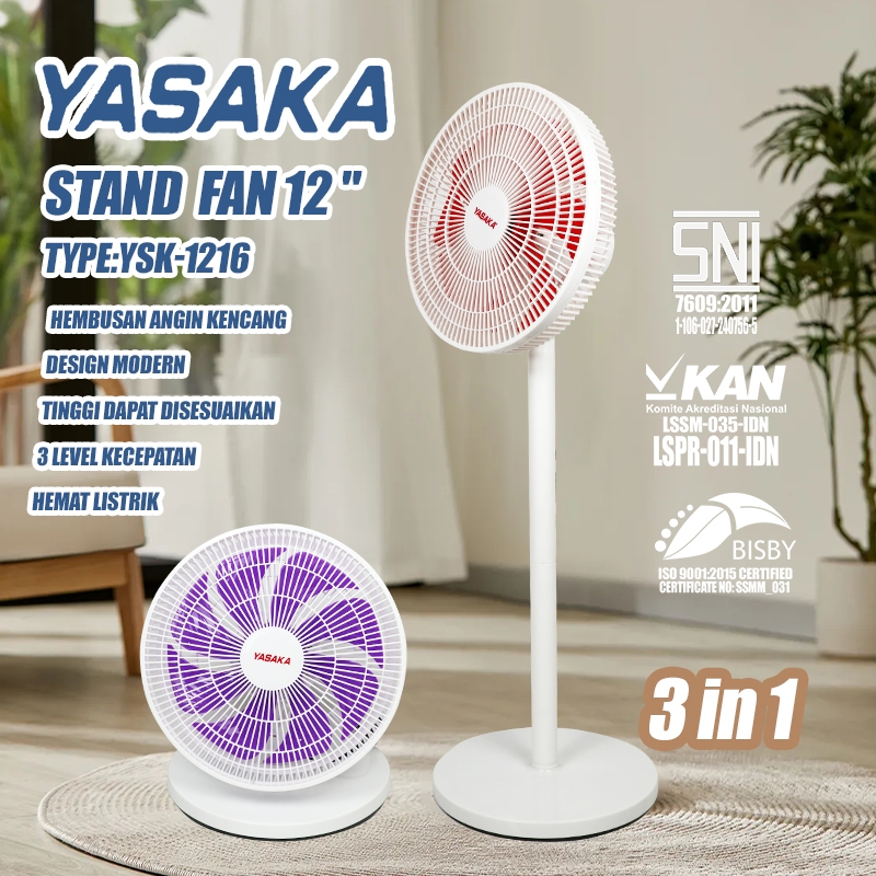 Kipas Angin Berdiri Yasaka 12 Inch/Stand Fan 3 In1 /Kipas Murah/Elektronik/Kipas Angin