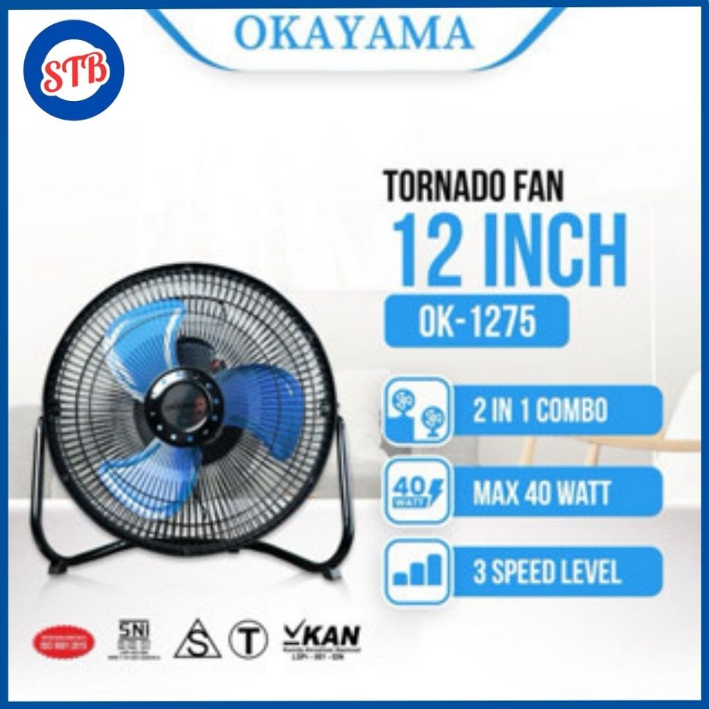 Kipas Angin Tornado Meja/Lantai Okayama Ok-1075 & Ok-1275 10&12 Inch