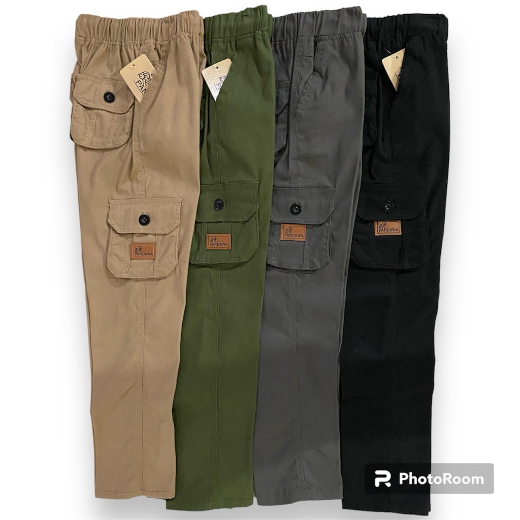 Celana Cargo Panjang Anak Lki Laki Celana Kargo Panjang Anak Laki Laki 5 - 12 Tahun Bahan Twill Combed Melar Ikat Pingga