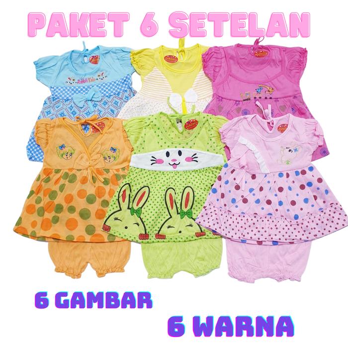 PAKET ISI 6 PCS SETELAN BAYI 0-12 BULAN BAJU ANAK PEREMPUAN SET ANAK BAJU BABY GRACIA PARSEL - RANDOM